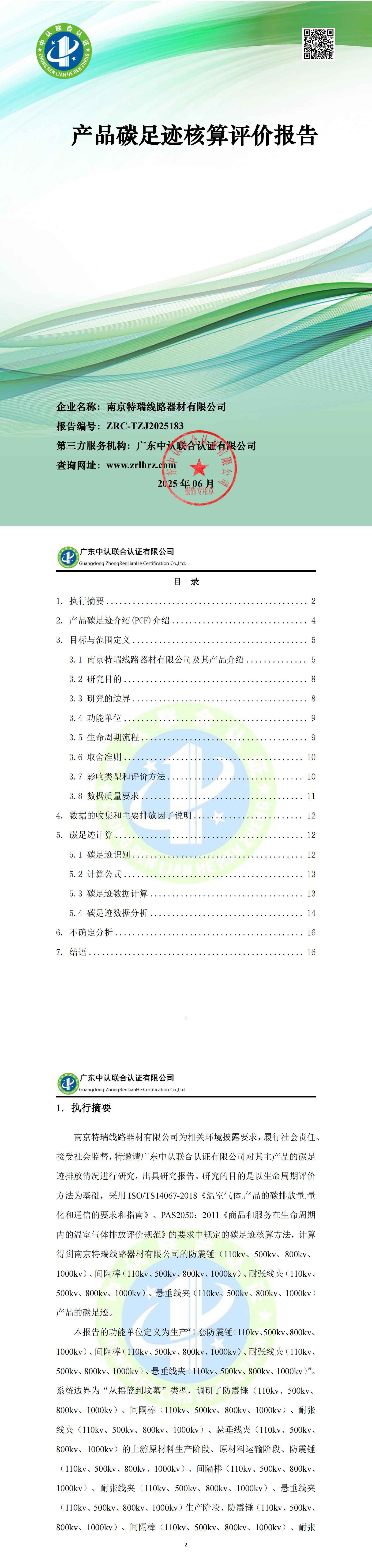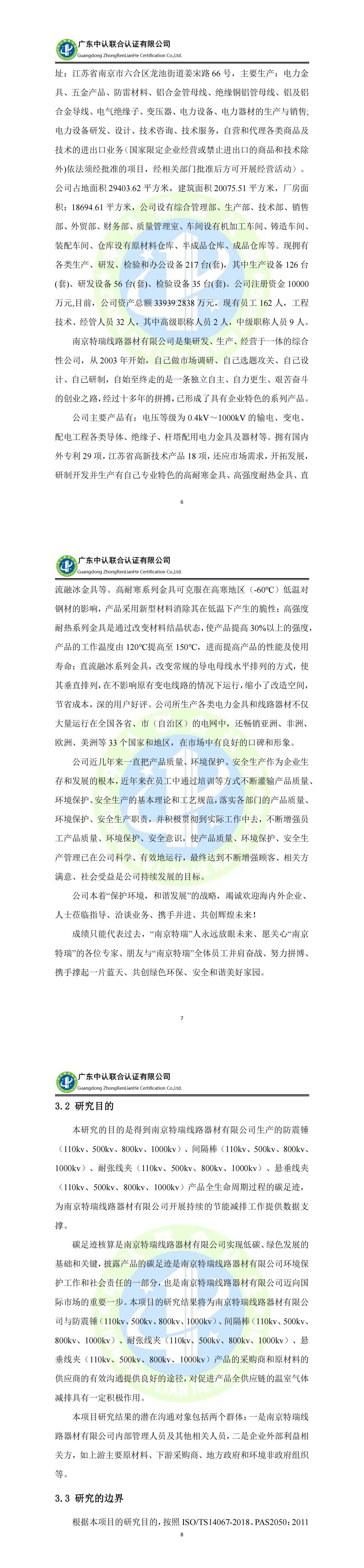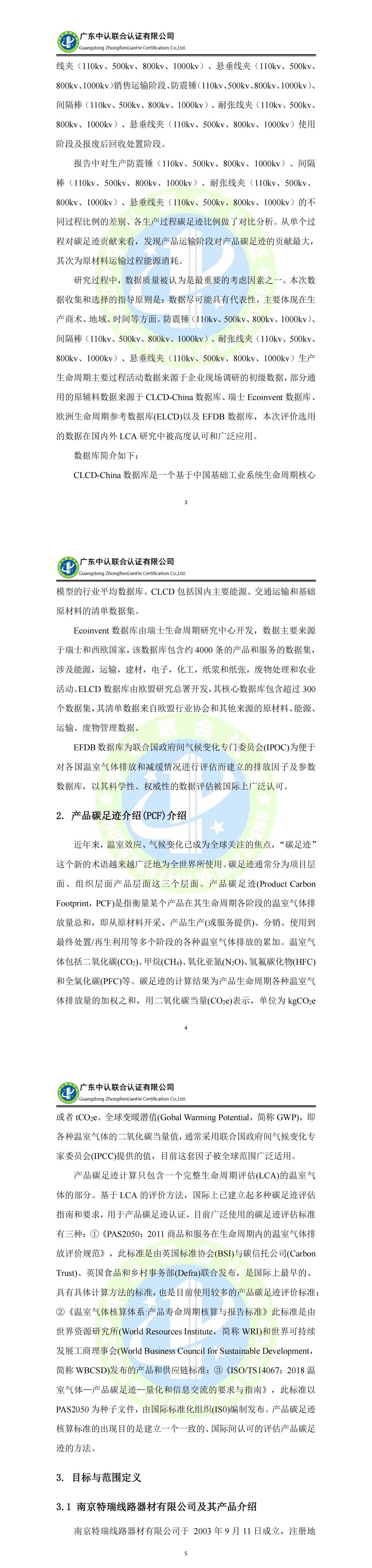 南京特瑞線路器材有限公司產(chǎn)品碳足跡核算評價報告