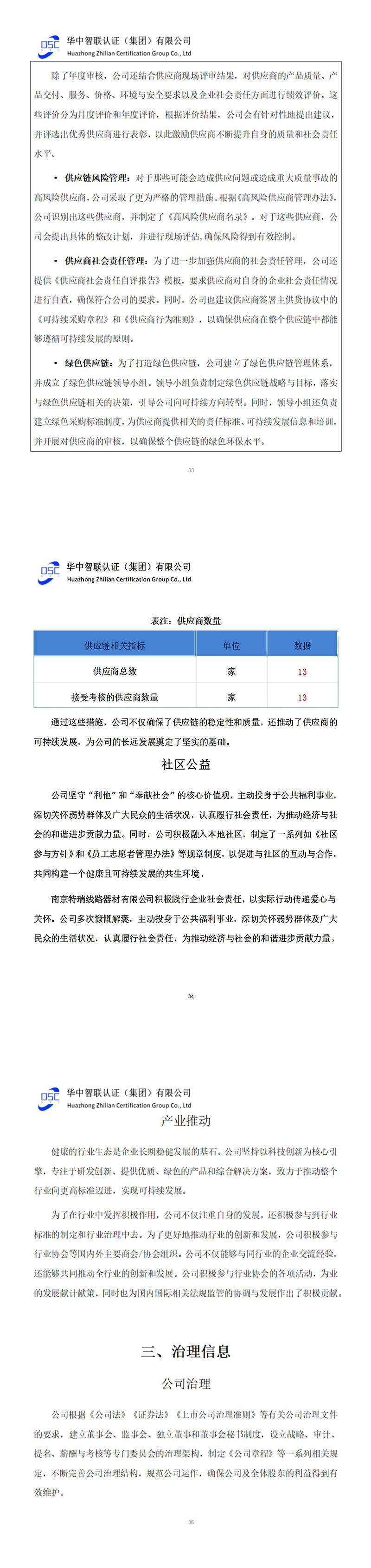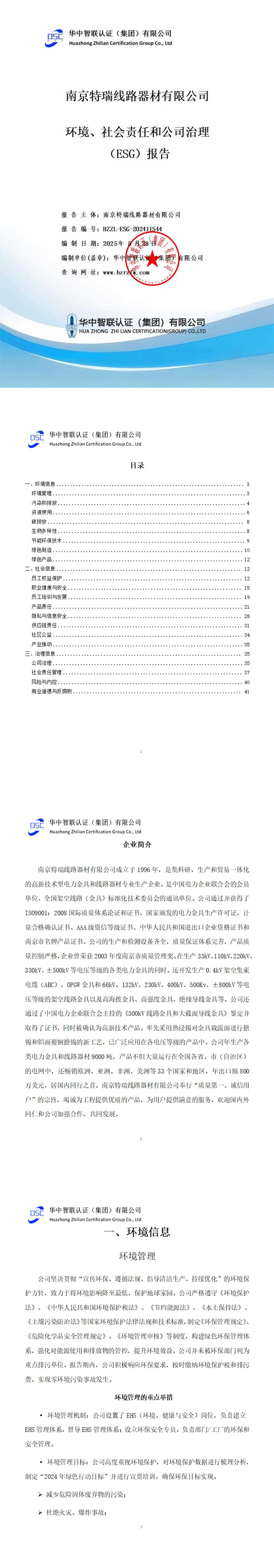 南京特瑞線路器材有限公司環(huán)境、社會責(zé)任和公司治理(ESG)報告